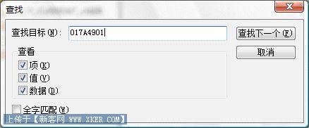使用模糊查询搜索我们刚才的病毒文件。不要包括扩展名,因为有的地方是以名字做注册表项的,我们同时勾选 项、值、以及数据。确保不放过一个敌人!