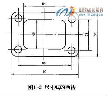 一个完整的长度尺寸标注由尺寸线、尺寸界线、尺寸箭头灯对象组成,而圆形、弧形、引线标注灯尺寸标注还有其他的对象。可参考图1-4的示例进行标注。