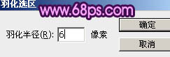 4、按Ctrl + Enter把路径转为选区,按Ctrl + Alt + D 把选区羽化6个像素如图5。确定后把选区填充紫色:#DB3FE0,效果如图6。这一步羽化的数值可以根据文字笔画大小自行设定,边缘看上去自然即可。为了便于参考,可以先影藏上面的文字图层。