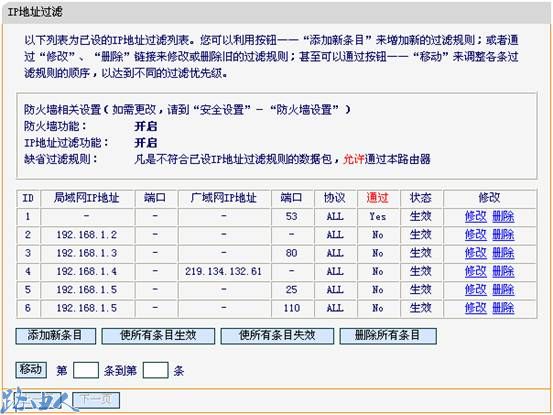 (1)我们通过IP地址过滤的方式对访问互联网的权限进行设置,对于其他的计算机则不做任何限制,把缺省过滤规则设置为允许通过,若不允许其他计算机上网,那么应该把缺省过滤规则设为禁止通过,而你的IP过滤条目的操作方法应该是允许通过的。
