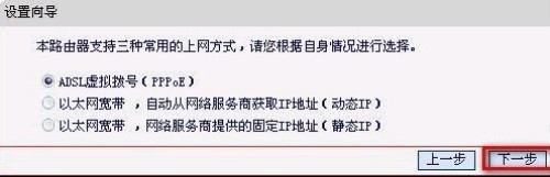 点下一步后:不要发问为什么选 “ADSL虚拟拨号(PPPoE)”这里对专业的东西不做多解释,只要明白一般由电信,网通,铁通等提供的个人ADSL宽带接入就这样选