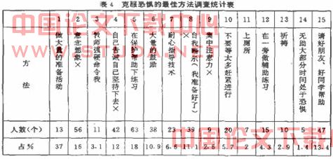 恐惧心理的克服方法很多。我呆用一组调查统计。如表4