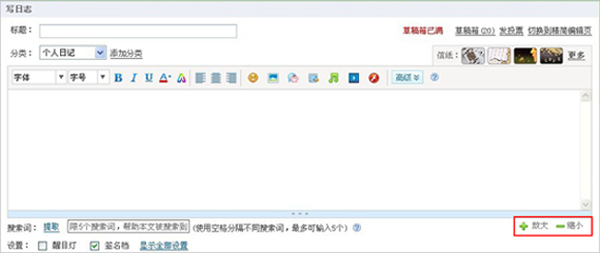怎么样把QQ空间日志编辑框放大、缩小?