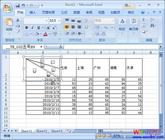 怎么样,一个简单的单斜线表头就画好了,下面再来看看制作多斜线表格的方法吧!
