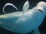 可爱的小白鲸水下吹泡泡自娱自乐(图)